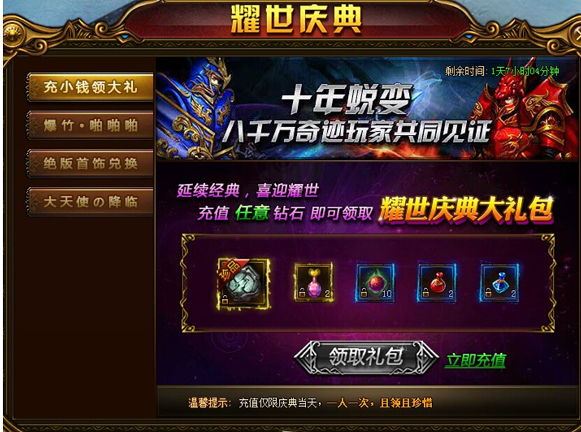 本帖最后由 dengxx111 于 2014-8-29 11:19 编辑 活动一、充值任意金额领大礼包 ...
