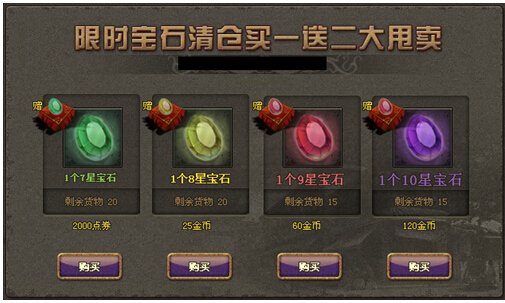 《傲视天地》新宝石倾销活动公告 【活动时间】:9月19日5:00——9月20日5:00【活动内容】:l 活动期间,每个玩家获得4堆商品的倾销机会,玩家可进行选择性的**,买一送二。l 最低档的商品改为使用点券**。 ...
