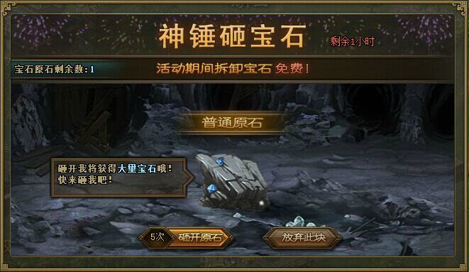 活动一神锤砸宝石,免费摘宝石! 活动范围:12月15日(含)之前所有已开在线服 参与要求:开启宝石功能 活动时间:12月22日0点至24点 活动内容:活动期间,世界上会出现“宝石原石”事件、玩家可选中免费原石,也可 ...