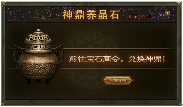 神鼎养晶石,进阶更快更轻松! 活动范围:12月17日(含)之前已开所有服 活动时间:12月24日0点至24点参与条件:已拥有晶石,且开启宝石商会的玩家 活动内容:活动期间,通过宝石商会获得神鼎,使用神鼎对晶石进行温 ...