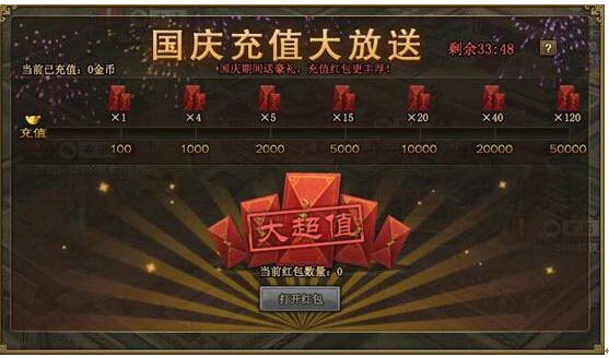 欢度元旦,充值送红包,奖励翻倍大放送! 欢乐元旦,充值福利大放送!1月1日至1月3日,充值送红包活动红包奖励大升级,红包各奖励不同倍数全面翻升!各位将军,只此2天,机不可失! 活动范围:2014年12月25日(含) ...