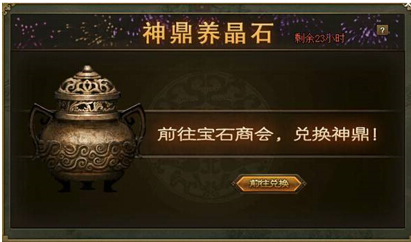 神鼎养晶石,进阶更快更轻松! 活动范围:2014年12月28日(含)之前已开所有服 活动时间:2015年1月4日0点至24点 参与条件:已拥有晶石,且开启宝石商会的玩家 活动内容:活动期间,通过宝石商会获得神鼎,使用神鼎 ...