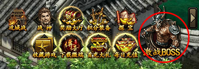 在游戏当中,每个玩家都拥有单挑强大BOSS的机会,点击激战BOSS图标,可以进入个人BOSS界面进行挑战。