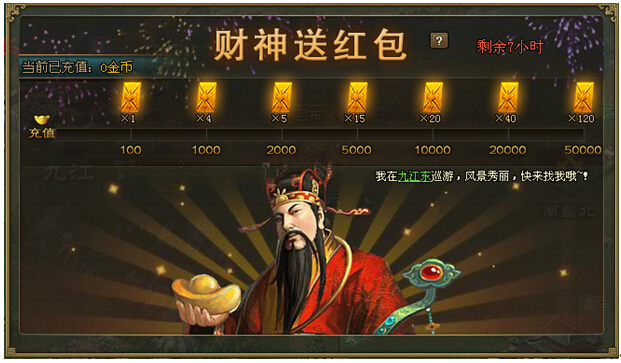 活动一、迎财神,双重红包大放送!(可获得吉羊) 活动范围:2月8日(含)之前已开所有服 活动时间:2月23日0点至2月24日24点参与要求:所有玩家,但开启世界地图后才能获得普通红包活动内容:活动期间,通过充值可 ...