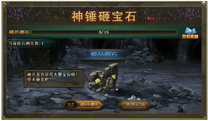 活动公告活动一神锤砸宝石,奖励可翻倍,额外送觉醒石! 活动范围:4月14日(含)之前所有已开在线服 参与要求:开启宝石功能 活动时间:4月21日0点至24点 活动内容:活动期间,世界上会出现“宝石原石”事件、玩家 ...