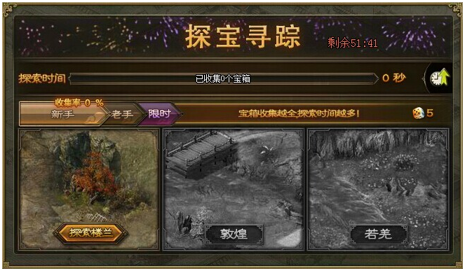 活动一:勇闯三大古城,秘境限时寻宝! 楼兰、敦煌、若羌,三大古城蕴藏着经验、点券、镔铁、宝石、免费精炼次数等多种财宝。限时秘境,宝箱多多,不用掷骰,自由抢宝!来吧!热血开始我 ...