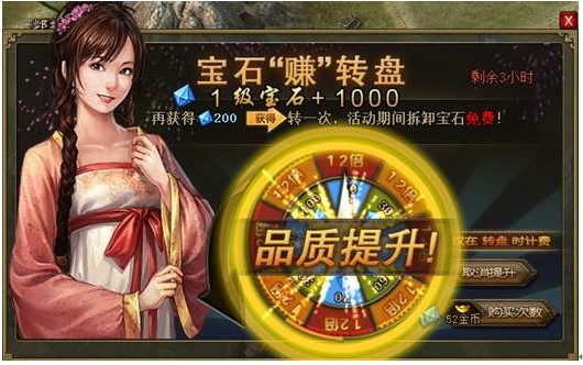 镔铁宝石大转盘!要“赚”什么转什么! 活动范围:5月6日(含)之前已开所有服 活动时间:5月13日0点至24点 活动内容:活动期间,分别存在“宝石”和“镔铁”两个转盘,按照自己的需要,可随心所欲的选择转盘,获得 ...