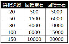 【活动】5月24日周日系列活动 祭祀活动活动时间:5月24日5:00——5月26日5:00活动内容:1. 通过祭祀可以获得银币、军功、点券、玉石、宝石,活动期间祭祀效果翻倍,暴击效果翻倍!2. ...