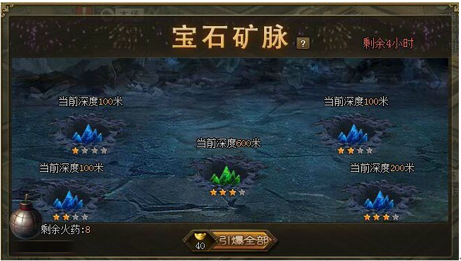 本帖最后由 冥王Fan 于 2015-6-20 23:22 编辑 【新宝石活动】宝石矿脉,高星宝石挖到爽! 神州大地隐圣地,宝石矿脉奇生现!深不可测的矿脉,富含大量宝石,挖的越深,宝石星级就越高!尽情炸矿脉,用力挖宝石吧 ...