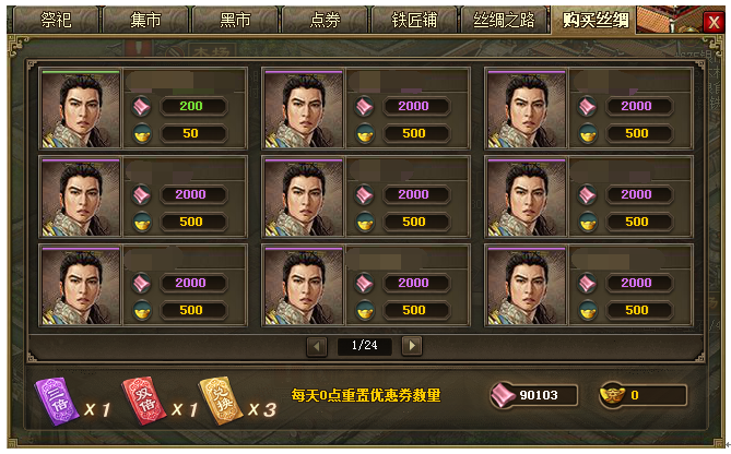 丝绸商铺3天大酬宾,首日免费赠送丝绸优惠券! 活动范围:6月14日(含)之前所有已开在线服活动时间:7月14日0点至7月16日24点参与条件:已开启丝绸之路的玩家活动内容:1. 活动 ...