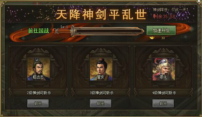 活动一天降神剑,经验翻滚累计最高300%! 活动范围:7月9日(含)之前已开所有服活动时间:8月8日0点至24点活动内容:活动期间,70级(含)以上的玩家通过升级神剑,斩杀每一次神剑升级后出现的NPC将领,即可获得经 ...