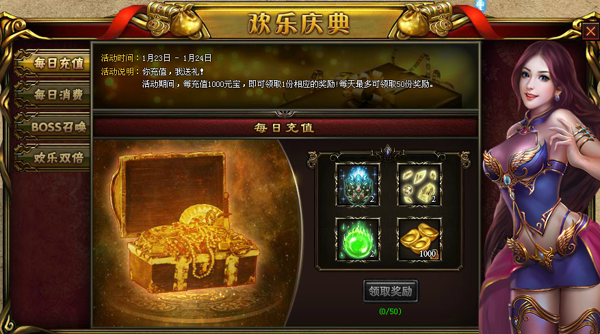活动一、每日充值 【活动时间】:2015.8.27 00:00 - 2015.8.29 23:59:59 【活动内容】:活动期间,每充值1000元宝,即可领取1分相应的奖励!每天最多可领取50份奖励。 每充值1000元宝奖励内容: 初级兽灵盏*2、魔 ...