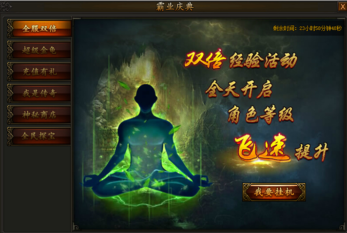 霸业庆典震撼升级,更多丰厚奖励等你来拿! 活动一:全服双倍活动时间:2015年8月31日全天全服双倍经验限时开启,打怪升级效率翻倍,双倍经验效果可和经验卷轴叠加,海量经验爽歪歪~ ...