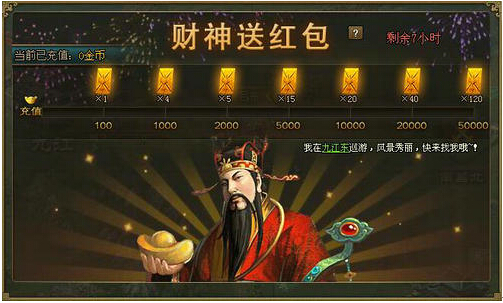 活动一:财神送红包,豪享缤纷好礼! 活动范围:8月24日(含)之前已开所有服 活动时间:9月23日0点至24点参与要求:所有玩家,但开启世界地图后才能获得普通红包活动内容:活动期间,通过充值可获得土豪金红包!在 ...