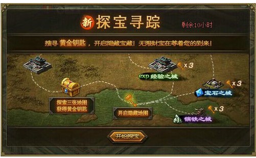 新古城探宝,创新玩法乐不穷!全新古城探宝活动,将大大缩短掷骰子的过程,由原新、老手地图改为三张普通古城地图,玩家在地图中探寻并收集“黄金钥匙”后,开启三大限时隐藏宝藏地图!无限财宝在等着您的到来!活动 ...