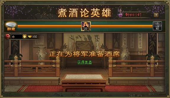 煮酒、古城探宝、犒赏武将、洗练开光 活动一:新煮酒论英雄,酒后觉醒更快意! “酒兴正酣”buff获取更容易,只要达到原醉意值条件的一半即可获得;同时当醉意值满时,还将获得大量的觉醒酒奖励,神将觉醒更待何时 ...