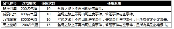 备战三级王朝,丝绸、锦囊等福利大放送! 万邦齐聚,共同备战三级王朝;丝绸、西域锦囊、招商令两天大敬献,同时活动每天的名气称号效果奖励(具有作用于丝绸之路的buff效果)可累积获享!向着珍宝,前进吧! 活动范 ...