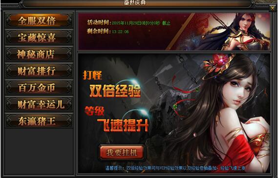 传奇盛世之盛世庆典一:全服双倍活动时间:11月28号-11月30号活动详情:活 ...
