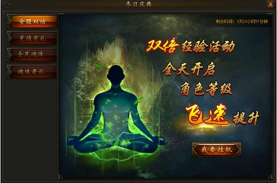 传奇霸业冬日送暖,海量奖励温馨回馈! 活动一:全服双倍活动时间:2016年1月14日00:00—1月18日23:59活动期间,全服双倍经验连开五天,海量经验轻松获得,双倍经验可与多倍经验卷轴、VIP多倍经验叠加,挂机经验大幅 ...