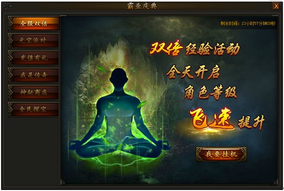 霸业庆典震撼来袭,更多丰厚奖励等你来拿! 活动一:全服双倍活动时间:2016年1月29日00:00-23:59全服双倍经验限时开启,打怪升级效率翻倍,双倍经验效果可和经验卷轴叠加,海量经验爽歪歪~ ...