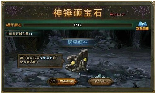 神锤砸宝石、古城探宝、天降神剑、洗练开光活动一:神锤砸宝石,免费宝石更多享!活动范围:2月5日(含)之前所有已开在线服活动时间:3月6日0点至24点参与要求:开启宝石功能 活动内容:活动期间,世界上会出现“宝 ...