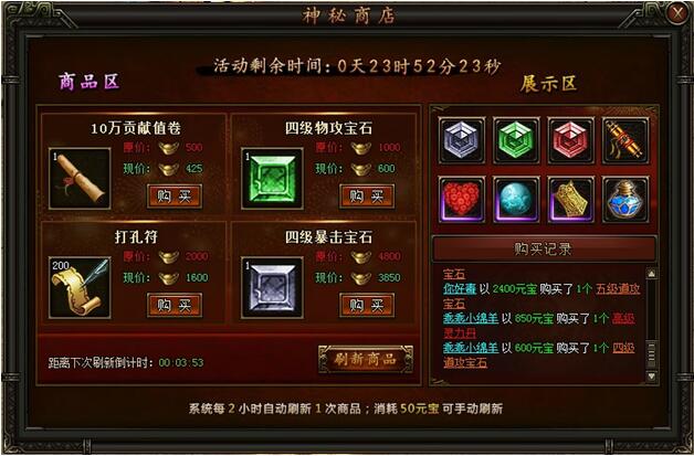 神秘商店打折抢购 实惠让利 活动内容:活动期间,全民让利大活动,全民共享!大家乐才是真的乐!玩家们可以在神秘商店中限时抢购各种低价商品。上架商品定时刷新,一起来淘你喜欢吧。 活动 ...