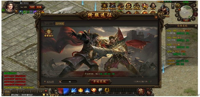 传奇霸业跨服5V5震撼来袭,全民竞技即刻开始! 【跨服匹配,全民参与】 开服第15天后,角色等级达到80级且攻击力达到8000的玩家,即可在跨服远征—血战到底界面参与5V5匹配,与其他服的玩家一同竞技。每日18:00~22: ...