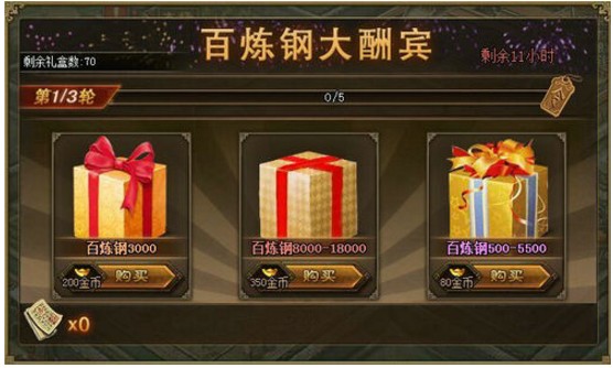 本帖最后由 冥王Fan 于 2016-7-2 22:19 编辑 百炼钢大酬宾、超级翻牌、洗练开光 活动一:百炼钢大酬宾,福利大狂欢! 百炼钢大酬宾,限时1天真情回馈!活动开启后,海量百炼钢大放送,助各位将军一臂之力,快速冲 ...