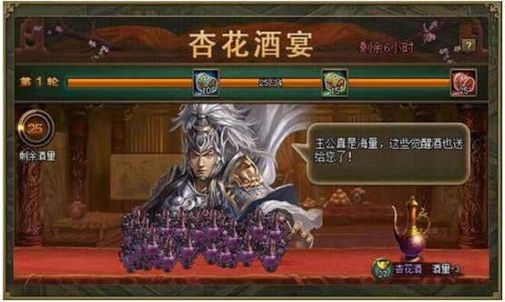 杏花酒宴、钢铁倾销、犒赏三军 活动一:杏花酒宴,觉醒酒大赠送! 杏花村大设酒宴,广招各路英雄品正宗杏花酒;活动期间,更有海量珍藏好久大放送,预祝各位早日觉醒各神将,独霸战场,称雄一方! 活动范围:6月14 ...