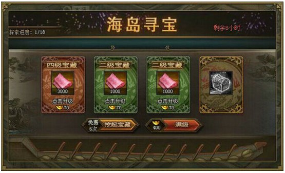 海岛寻宝、宝石矿脉、古城探宝 活动一:海岛寻宝大冒险,珍宝福利齐放送!自“海上丝路”上线后,深受广大玩家喜爱;现在我们还将隆重推出升级版“海岛寻宝”活动,玩家可获得更多的丝绸、西域锦囊或珍宝碎片奖励, ...