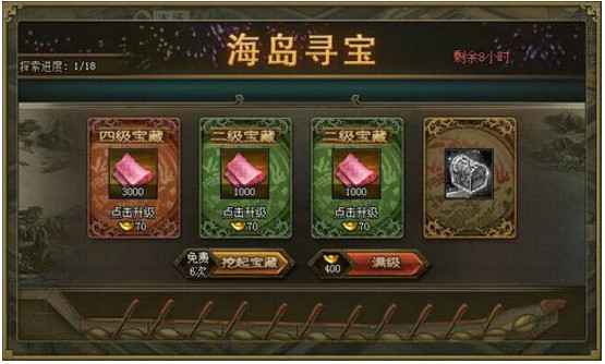 海岛寻宝、广结名士、钢铁倾销、天降神剑 活动一:海岛寻宝大冒险,珍宝福利齐放送!自“海上丝路”上线后,深受广大玩家喜爱;现在我们还将隆重推出升级版“海岛寻宝”活动,玩家可获得更多的丝绸、西域锦囊或珍宝 ...