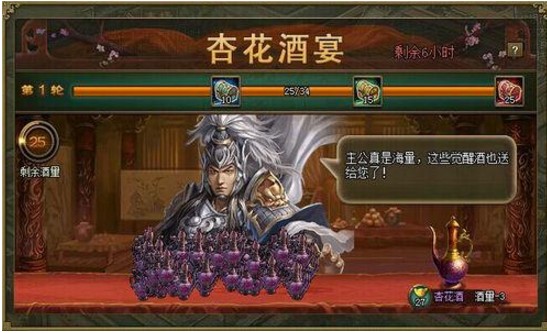 花酒宴、宝石矿脉、开采矿山、犒赏三军 活动一:杏花酒宴,觉醒酒大赠送! 杏花村大设酒宴,广招各路英雄品正宗杏花酒;活动期间,更有海量珍藏好久大放送,预祝各位早日觉醒各神将,独霸战场,称雄一方! 活动范围 ...
