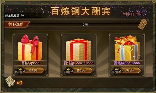 百炼钢大酬宾、广结名士、雄黄酒宴、宝石矿脉、犒赏三军 活动一:百炼钢大酬宾,福利大狂欢! 百炼钢大酬宾,限时1天真情回馈!活动开启后,海量百炼钢大放送,助各位将军一臂之力,快速冲击“神兵”,早日擒获猛将 ...