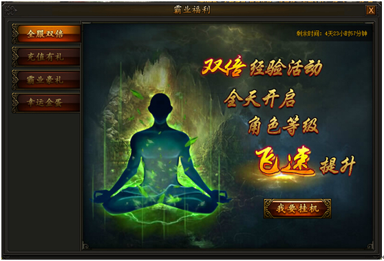 霸业福利,海量豪礼送不停! 1. 全服双倍活动时间:2016年9月2日00:00 — 9月6日23:59活动期间内即可获得双倍经验效果加成,可与其他双倍经验叠加。 ...