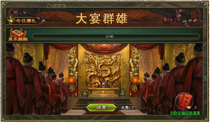 活动二:庆国庆,登陆送送送! 活动范围:9月11日(含)之前已开在线服 活动时间:10月1日10点至10月3日24点 活动内容:活动期间,每日登陆游戏即可获得500万粮食及100募兵令。 重要提示:礼包有效期至发放礼包当日 ...