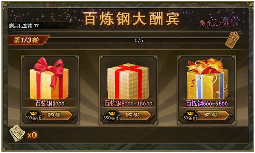 百炼钢大酬宾、广结名士、雄黄酒宴、宝石矿脉 活动一:百炼钢大酬宾,福利大狂欢! 百炼钢大酬宾,限时1天真情回馈!活动开启后,海量百炼钢大放送,助各位将军一臂之力,快速冲击“神兵”,早日擒获猛将孟获! 活 ...