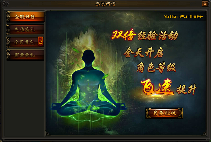 本帖最后由 进击的Duang 于 2016-11-19 12:04 编辑 感恩回馈,海量材料送不停! 1. 全服双倍活动时间:2016年11月19日00:00 — 11月22日23:59活动期间内即可获得双倍经验效果加成,可与其他双倍经验叠加。 ...