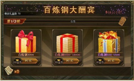百炼钢大酬宾、御宝冲刺、陨铁祭祀、超级翻牌、杏花酒宴、神锤砸宝石 活动一:百炼钢大酬宾,福利大狂欢! 百炼钢大酬宾,限时1天真情回馈!活动开启后,海量百炼钢大放送,助各位将军一臂之力,快速冲击“神兵”, ...