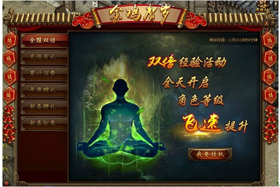 财神到,过新年,家家户户乐逍遥,金鸡贺岁,海量活动等你来嗨! 1. 全服双倍活动时间:2017年1月23日00:00 — 2月4日23:59活动期间内即可获得双倍经验效果加成,可与其他双倍经验叠加。 ...