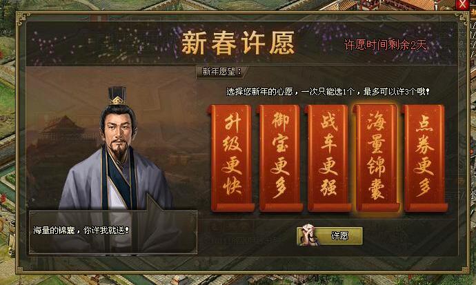 本帖最后由 咸鱼星人 于 2017-1-26 22:51 编辑 张灯结彩迎新春,五谷丰登游攻城 鸡鸣晓日江山丽,犬吠神州岁月新。《攻城掠地》新春大放送!新春许愿抢先上线,新春礼包紧随其后,随 ...
