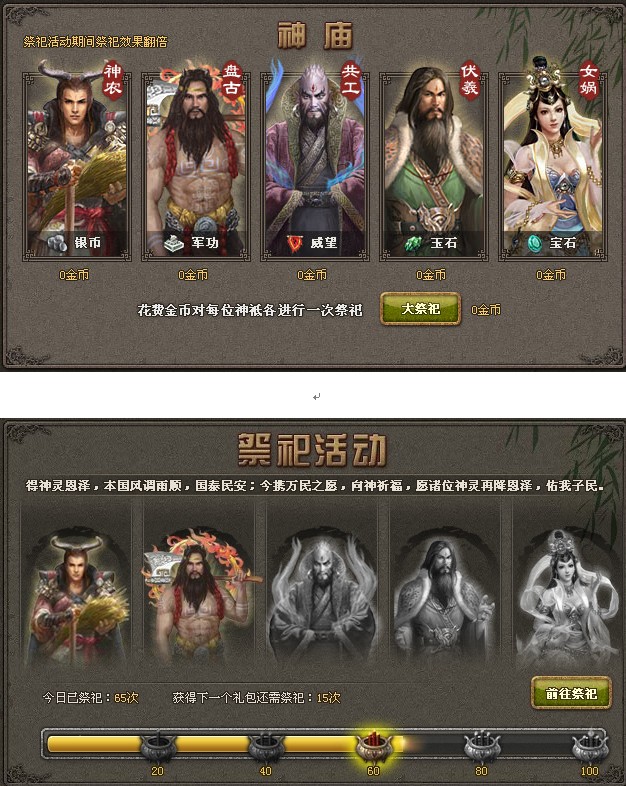 《傲视天地》3月12日 全新祭祀活动,点券现点现送 【活动时间】:3月12日凌晨5:00——3月13日凌晨5:00【活动内容】:l 通过祭祀可以获得银币、军功、威望、玉石、宝石,活动期间祭祀效果翻倍,暴击效果翻 ...