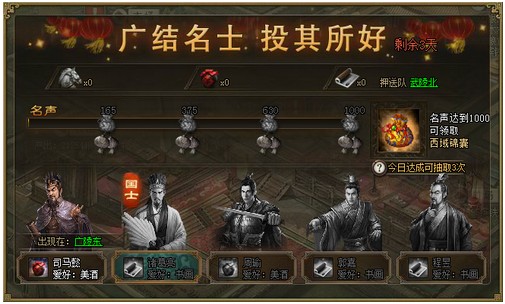 游戏充值新福利!实物奖品送不停! 点击此处参与广结名士,国士登场,奖励更奢华!活动范围:2月7日(含)之前已开所有服 活动时间:2月27日0点至3月1日24点活动内容:活动期间,世界上会出现携带“贵重品”的运输 ...