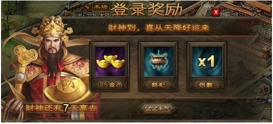 游戏充值新福利!实物奖品送不停! 点击此处参与神秘活动庆新版,喜迎财神福利到 3月新版福利大放送!超值活动“财神到”再度开启,神秘陨铁活动“铁甲冲锋”首次亮相,还有“木牛流马 ...
