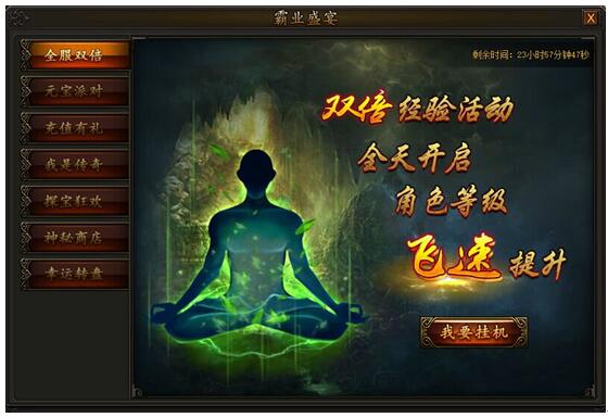 霸业盛宴,海量豪礼送不停! 1. 全服双倍活动时间:2017年3月31日00:00 — 23:59活动期间内即可获得双倍经验效果加成,可与其他双倍经验叠加。