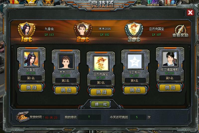 本国竞技场功能一. 概述玩家可对竞技场中排名比自己靠前的玩家发 ...
