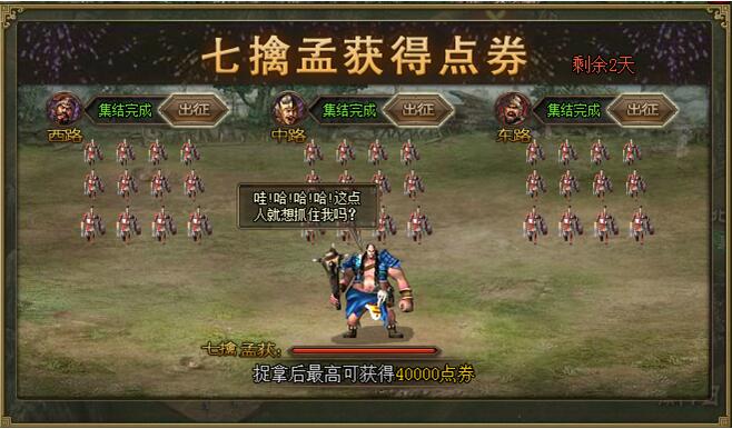 本帖最后由 进击的Duang 于 2017-5-8 09:45 编辑 三路大军连擒孟获,宝箱连开点券狂送!活动一:活动范围:4月18日(含)之前已开所有服活动时间:5月8日0点至5月9日24点参与条件:已开启世界地图 活动玩法:活动 ...