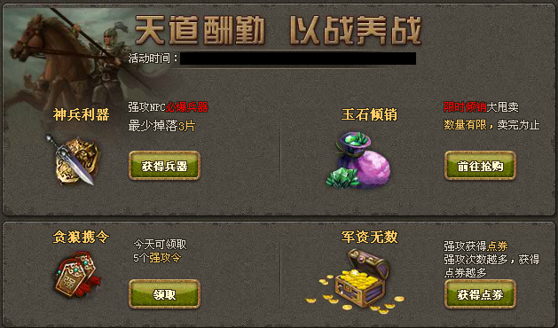 玉石倾销&兵器活动公告 3月初新版玉石倾销性价比提升!最低档的商品能用点券购买了!强攻送点券并入活动界面,马上参与马上领取!【活动时间】:3月16日0:00——24:00【活动内容】:1. 天道酬勤,以 ...