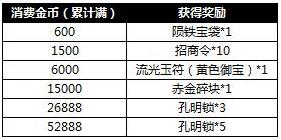 充值砸元宝、消费送礼、木牛流马、镇守襄阳、神锤砸宝石、古城探宝、犒赏三军 活动一:充值砸元宝,招商陨铁大赠送! 活动范围:5月25日(含)之前已开所有服活动时间:6月14日0点至24点参与要求:已开启世界地图的 ...