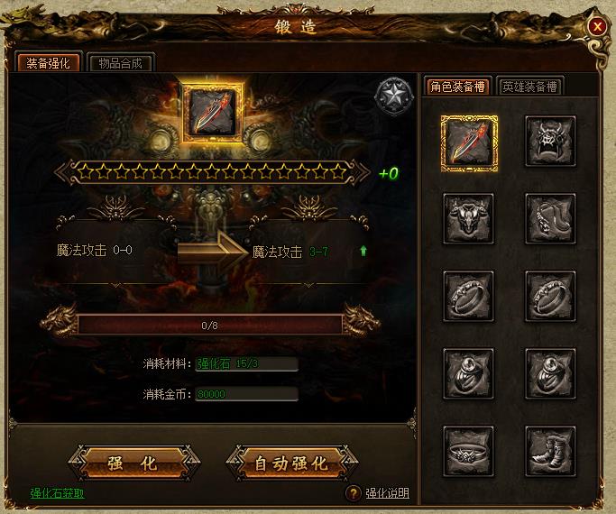 本帖最后由 夏日大猫熊 于 2018-7-23 09:38 编辑 强化系统游戏中告别了以往的强化玩法,主要强化的是装备部位 当全身强化达到一定的星级后会激活相应的强化星级属性,来扩大自身装备的属性值; 但是游戏中的强化 ...