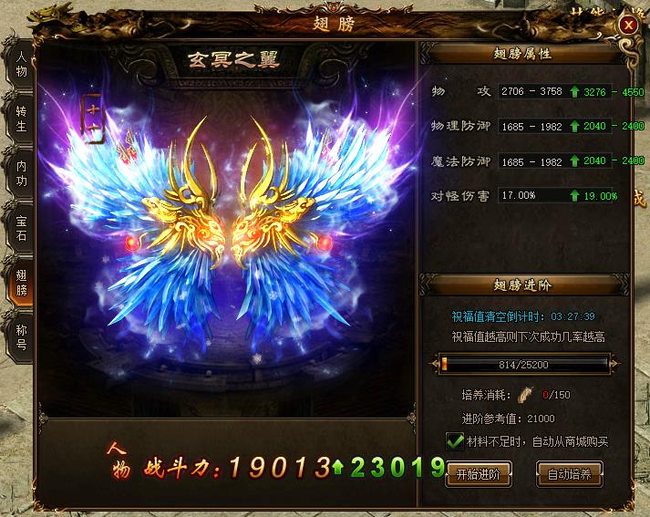 本帖最后由 夏日大猫熊 于 2018-7-23 09:35 编辑 翅膀系统精通变化之术的异人发现,人身和羽翼的组合比变化成大鸟更方便,于是出现了变化多端、更具威力的翅膀。 玩家达到65级后可以点击角色界面中翅膀按钮来打开 ...